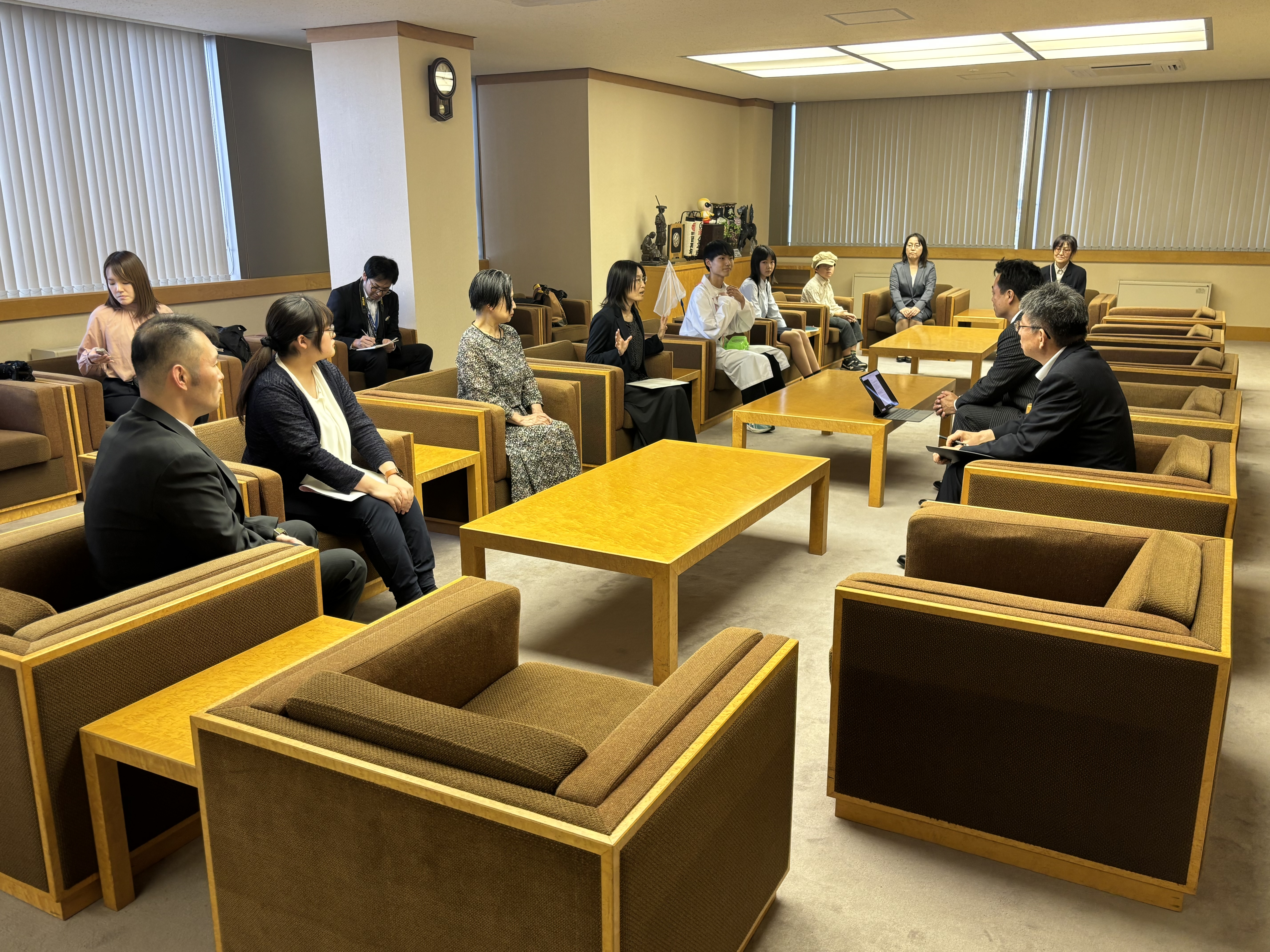 苫小牧白鳥ライオンズクラブYCE来日生からの表敬訪問を受けました。来日生には苫小牧の食などを堪能してもらい、本市や北海道の魅力を感じてほしいです。
