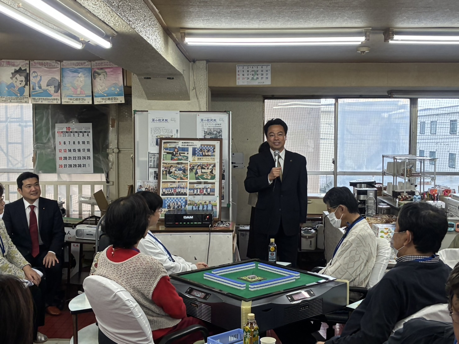 第16回市民交流健康マージャン大会でご挨拶をさせていただきました。健康マージャンは認知症予防をはじめ、心身ともに楽しく生活するための健康法として優秀なツールであると感じております。今後もこの大会が末永く続き、地域の元気づくりにつながることを心より願っております。