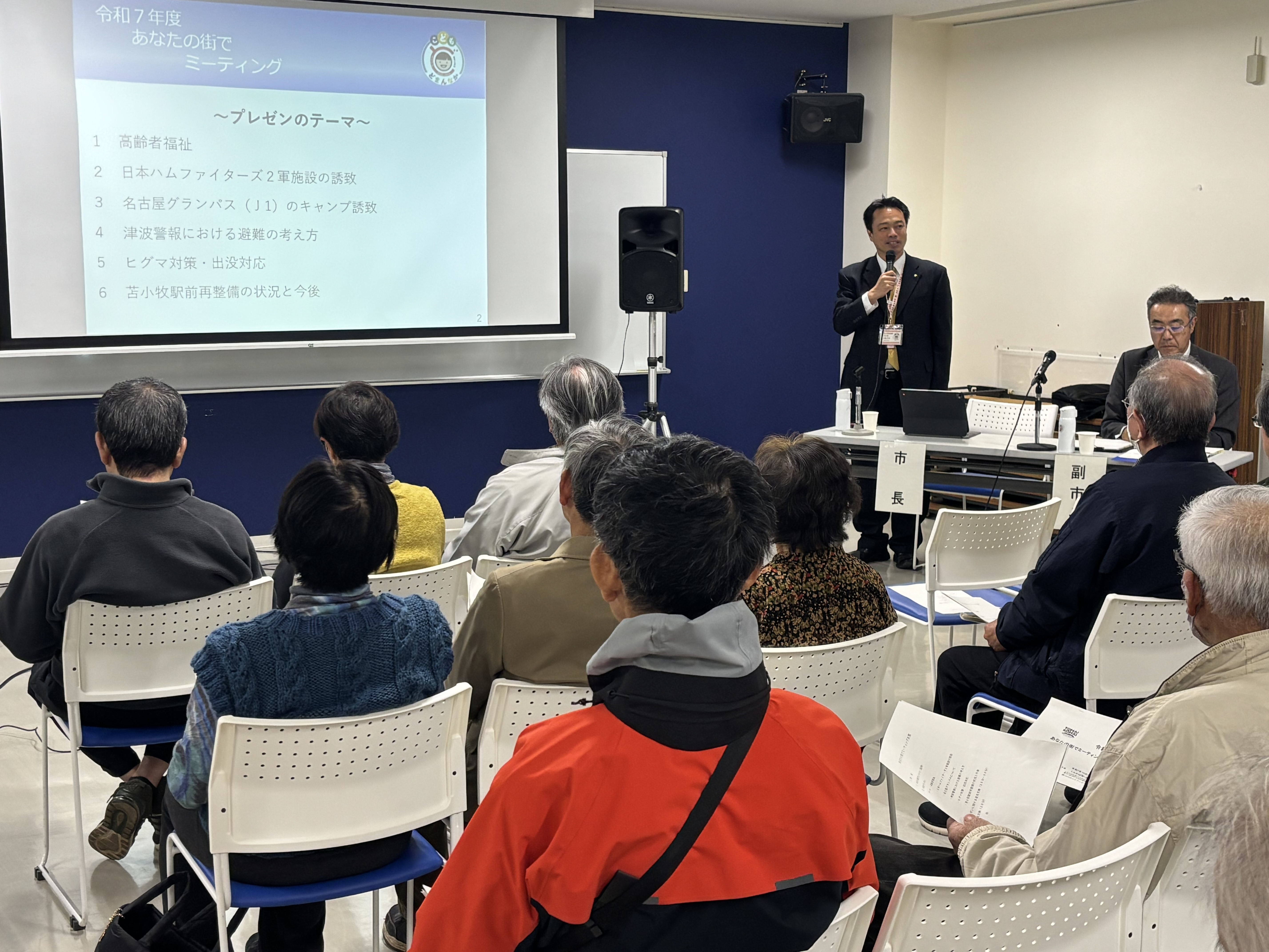 豊川コミュニティセンターで、あなたの街でミーティング(旧まちかどミーティング)を行い、該当地域の皆さんと市政について意見交換をさせていただきました。