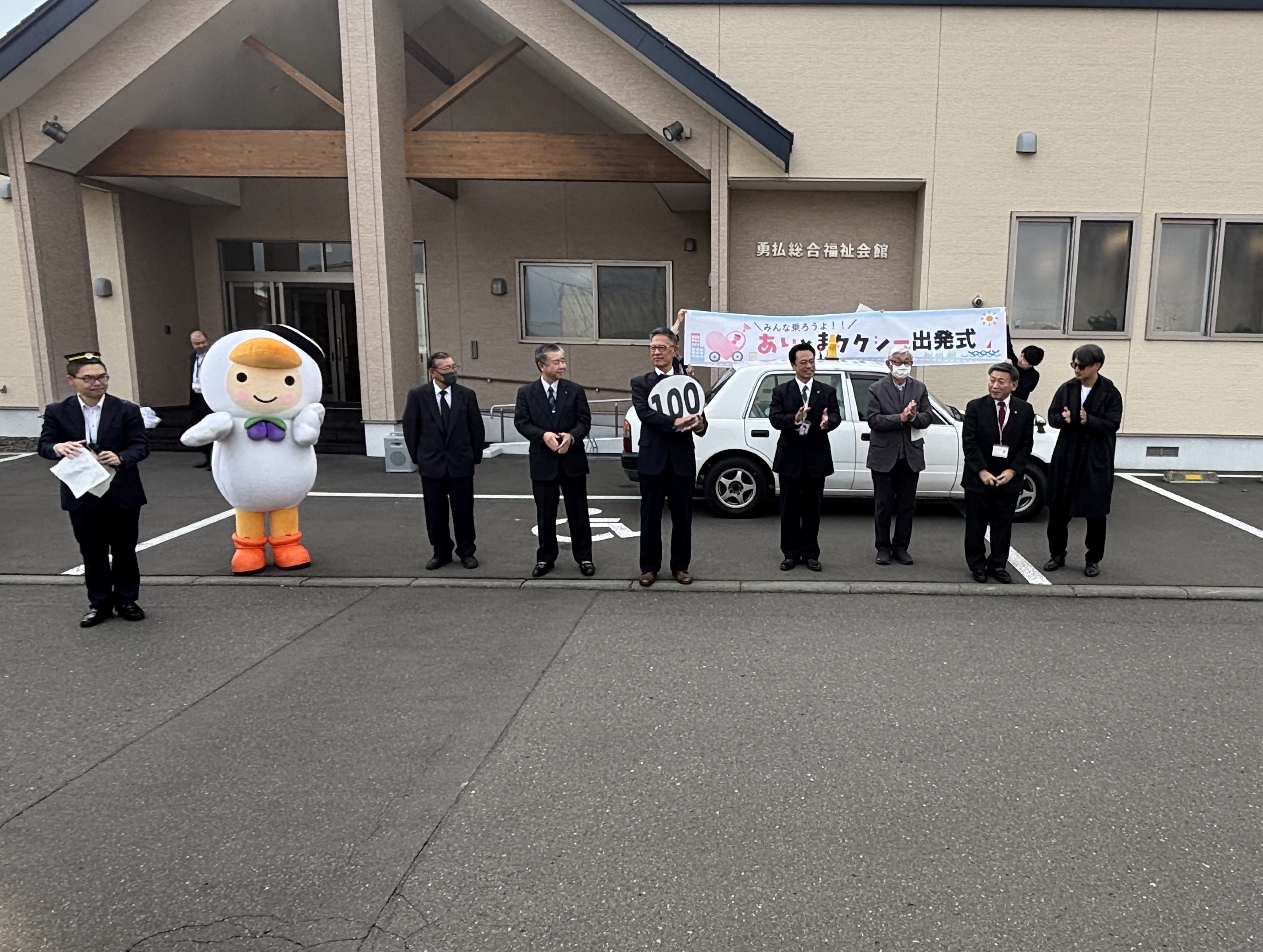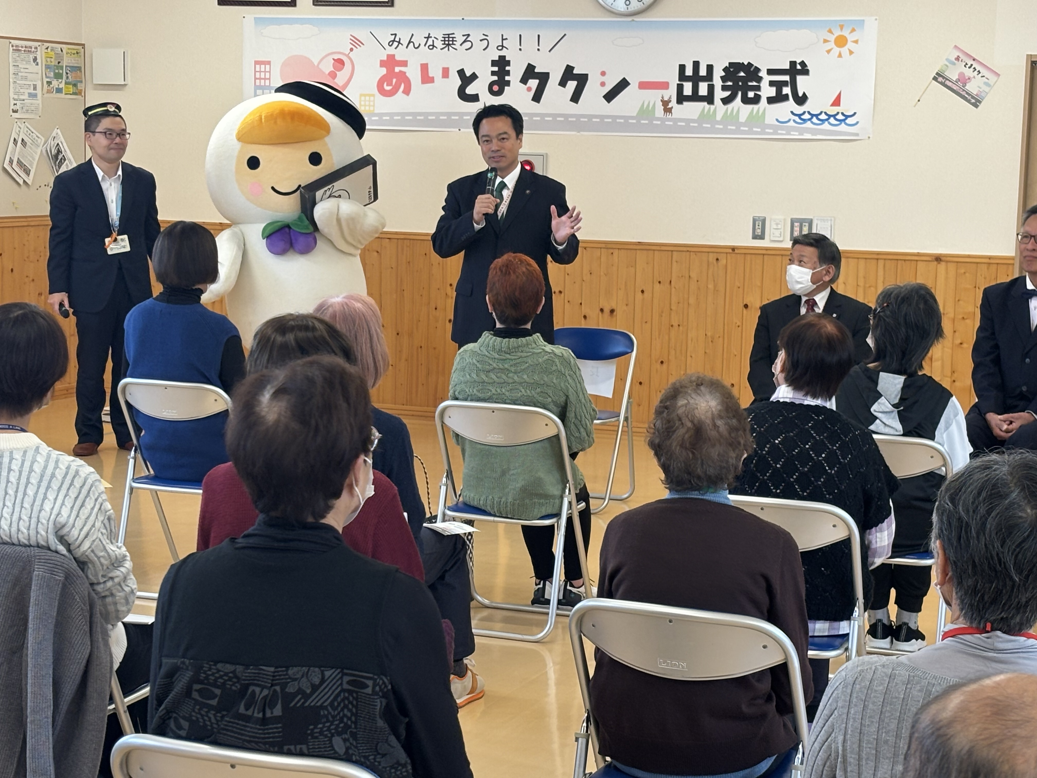 勇払地区で11月4日(火)~28日(金)の平日に運行される、あいとまタクシー(AIを活用した乗り合いタクシー)の実証運行開始セレモニーでご挨拶をさせていただきました。