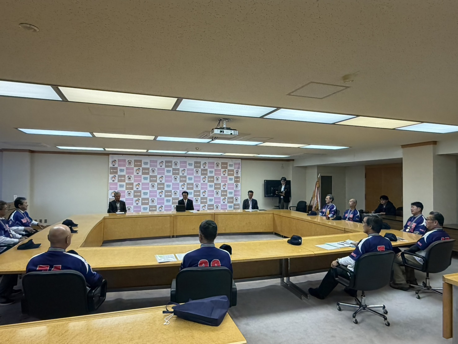 10月11日~14日に神奈川県で行われた第39回全日本還暦軟式野球選手権大会で、見事優勝された選手・関係者の皆さんによる表敬訪問を受けました。本市代表として輝かしい成績を収められたことを心からたたえ、今後のさらなるご活躍を期待しています。