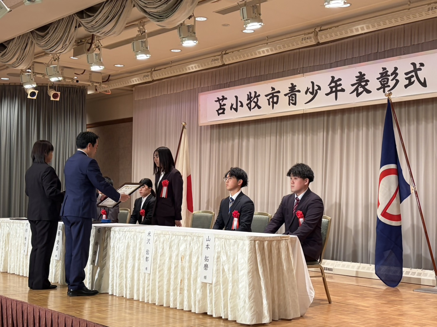 令和7年度苫小牧市青少年表彰式が行われ、それぞれの分野(医療・福祉職、介護職、町内会活動、作業職、生産関係職)で他の模範となる活動や地場産業の振興などに貢献された皆さまの功績をたたえ、表彰させていただきました。受賞者された皆さまの今後のさらなるご活躍に期待しています。