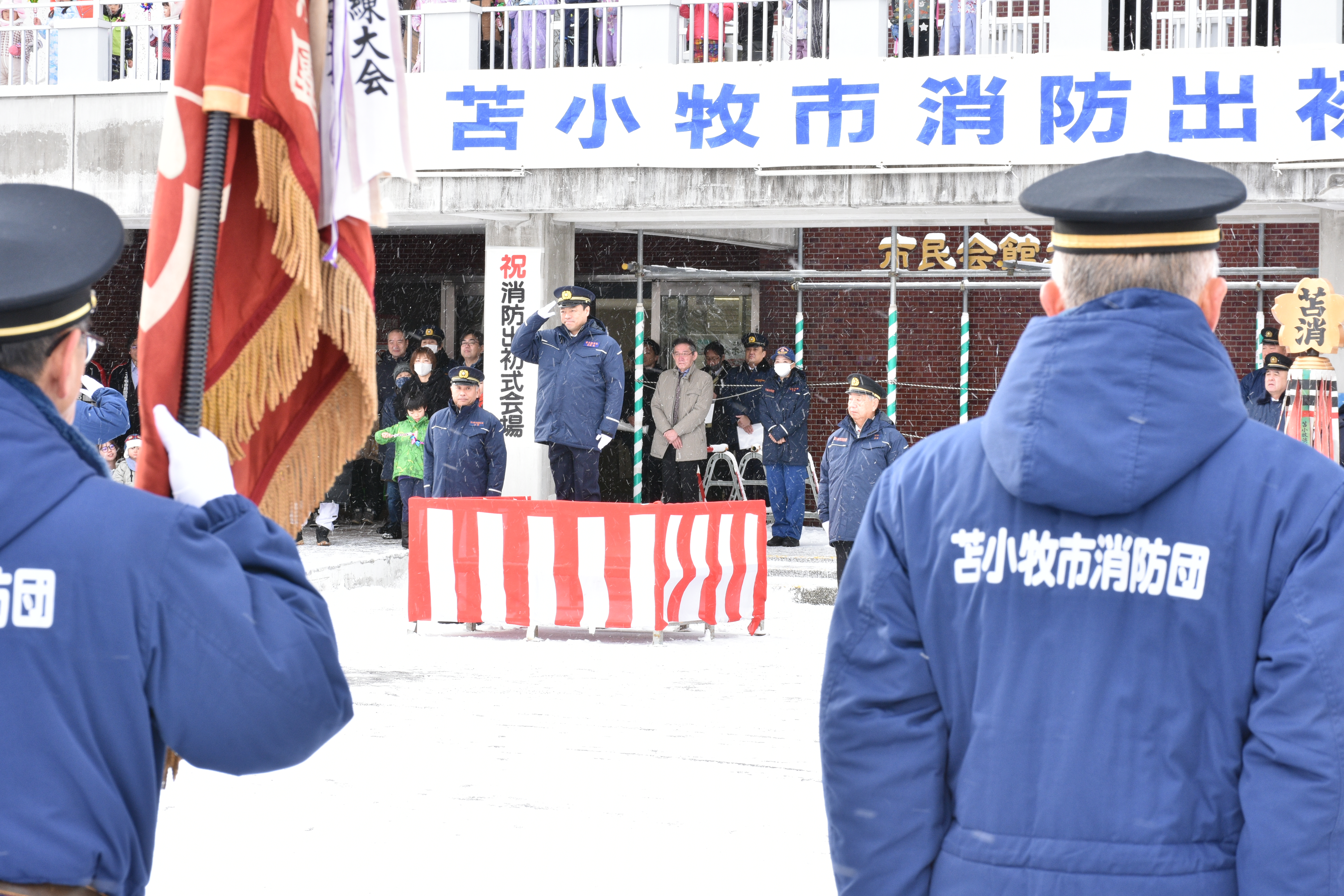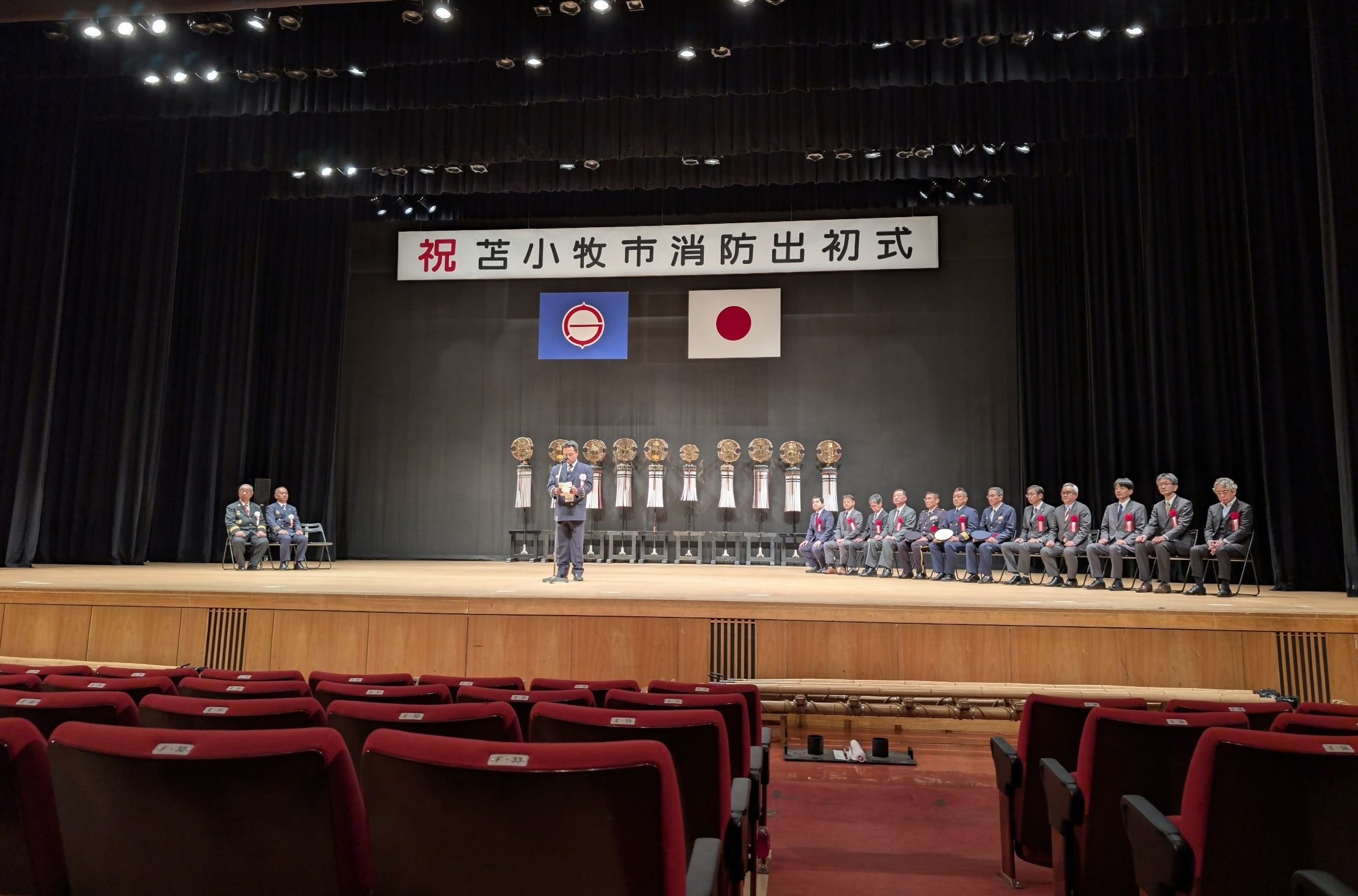令和8年苫小牧市消防出初式でご挨拶をさせていただきました。日頃から地域防災の担い手として、市民の生命と財産を守るためにご尽力いただいておりますことに、深く敬意と感謝を表します。皆さまの献身的な活動は、市民にとって大きな安心と信頼につながっており、本日の出初式を新たな決意の場として、今後とも安心・安全なまちづくりのため、より一層のお力添えをお願い申し上げます。