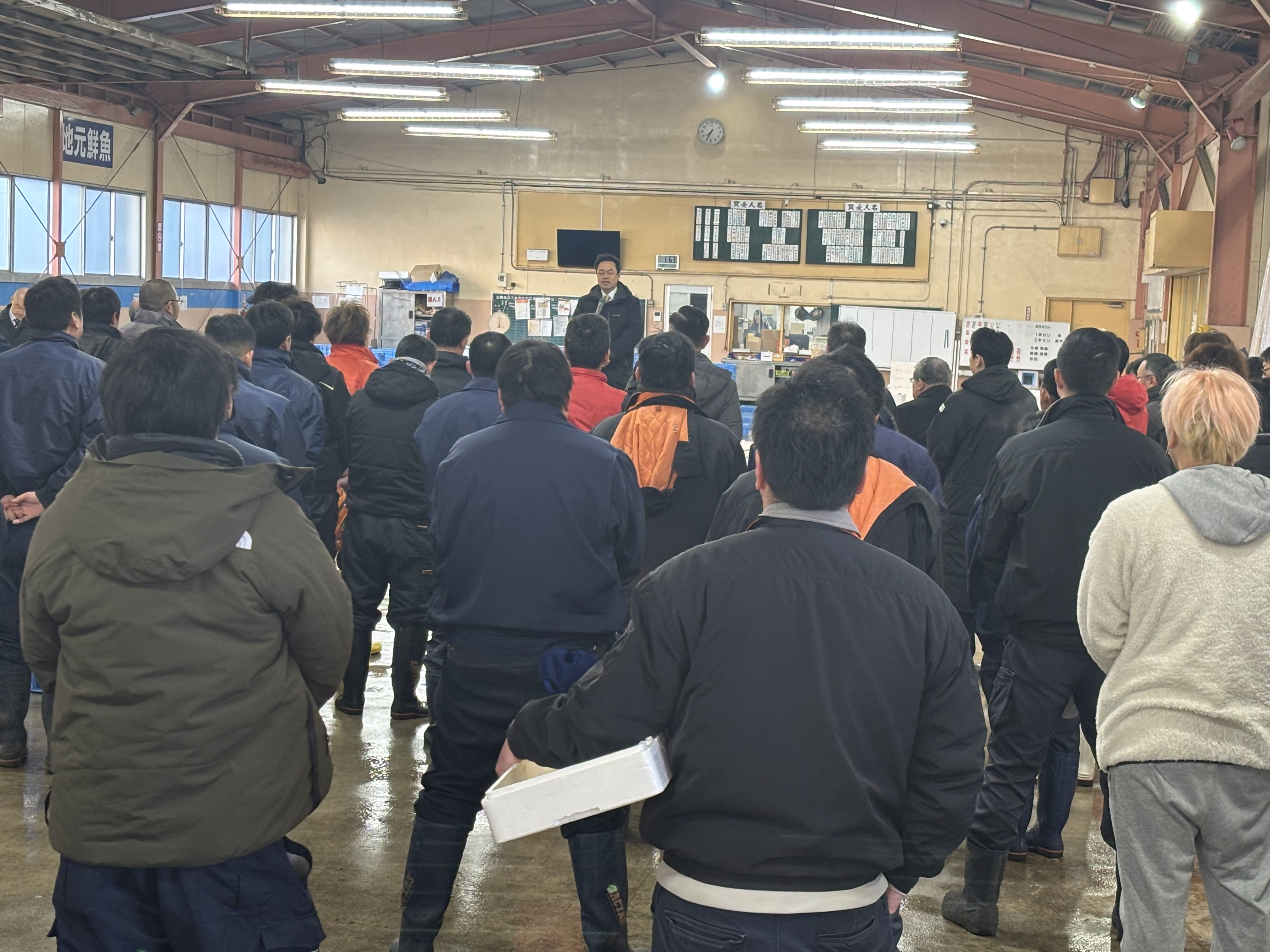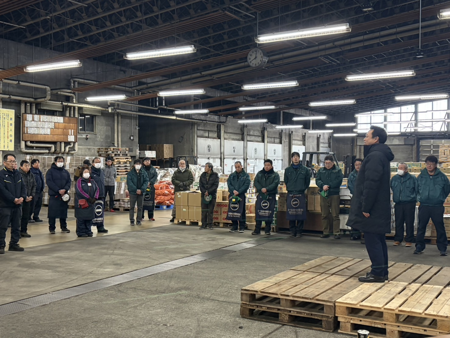 マルトマ苫小牧卸売(株)令和8年「水産物部初せり」、丸一苫小牧中央青果(株)「青果部初せり」および苫花地方卸売市場「苫花花き市場初せり」にそれぞれ出席させていただき、ご挨拶をさせていただきました。今年1年の関係各位の皆さまのご健勝と益々のご発展を心よりご祈念申し上げます。