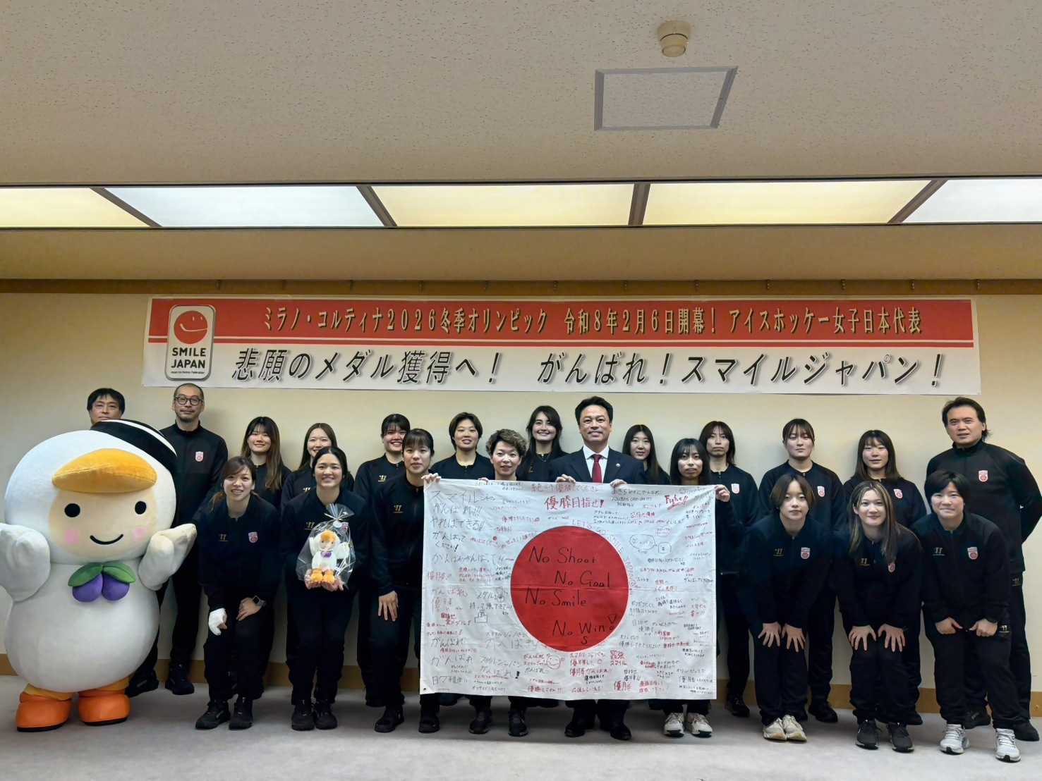 2月6日(金)からイタリア北部のミラノとコルティナ・ダンペッツォで行われる、ミラノ・コルティナ2026冬季オリンピック アイスホッケー女子日本代表(スマイルジャパン)出場選手・関係者による表敬訪問を受けました。選手の皆さんによる日々の厳しい練習とたゆまぬ努力の積み重ねが、今回の大舞台につながったものと心から敬意を表します。本番では存分に力を発揮されることを心から願うとともに、市民一同全力で応援しています。