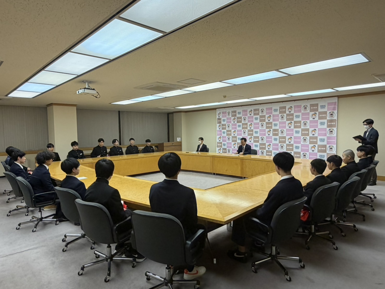 1月22日(木)~25日(日)に群馬県で行われる、令和7年度全国中学校体育大会 第46回全国中学校アイスホッケー大会に出場する選抜選手・関係者の表敬訪問を受けました。本市の代表として選手たちが全力を出し切ってくれることを願い、エールを送りました。