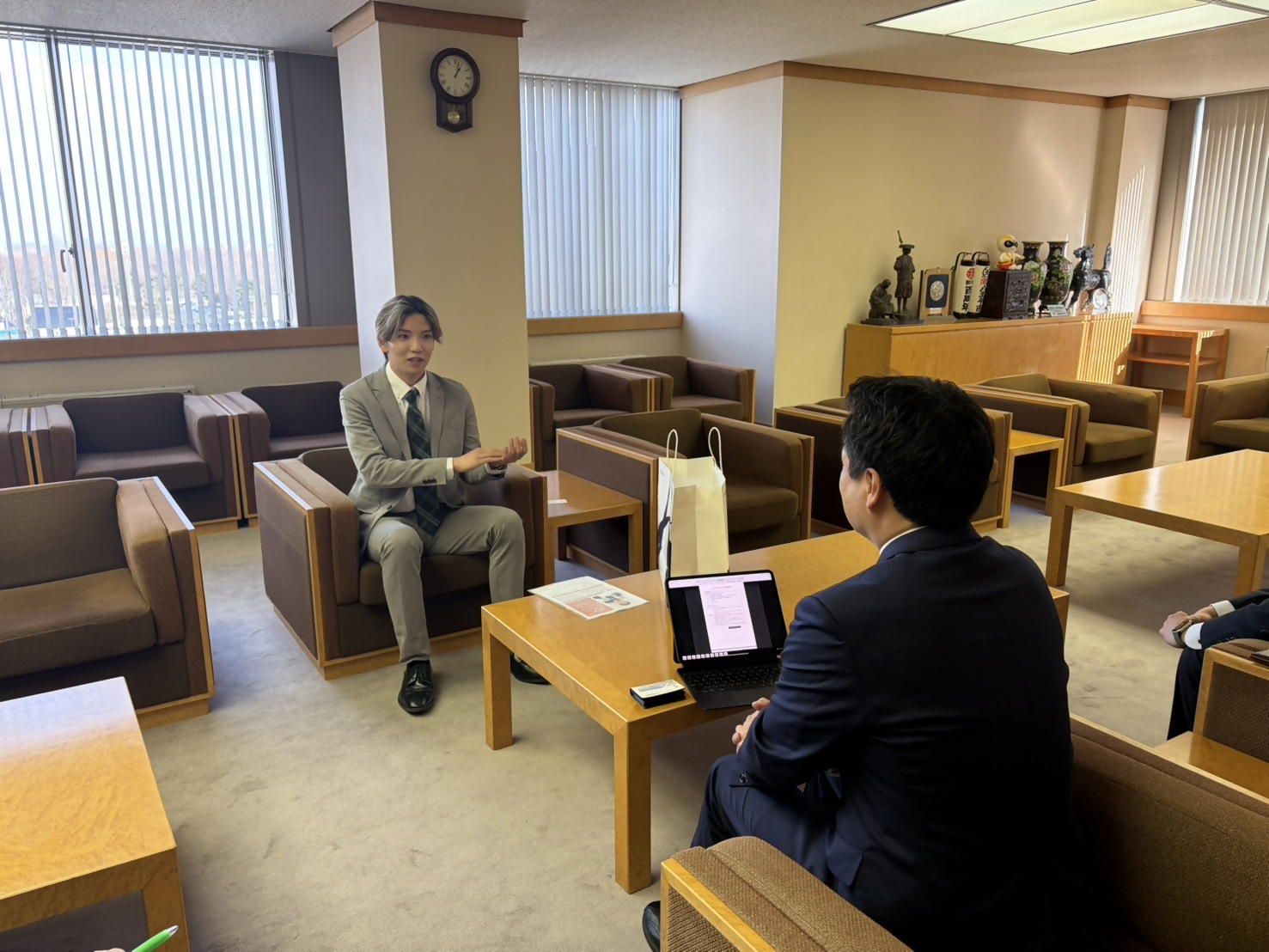 本市出身で昨年3月からとまこまい観光大使を務める、KAZUKI(かずき)氏による表敬訪問を受けました。現在はモデル・タレント・インフルエンサーとして雑誌・テレビ・Webなどで活動の場を広げており、今後のますますのご活躍を期待するとともに、本市の魅力を多くの方に発信していただければ幸いです。