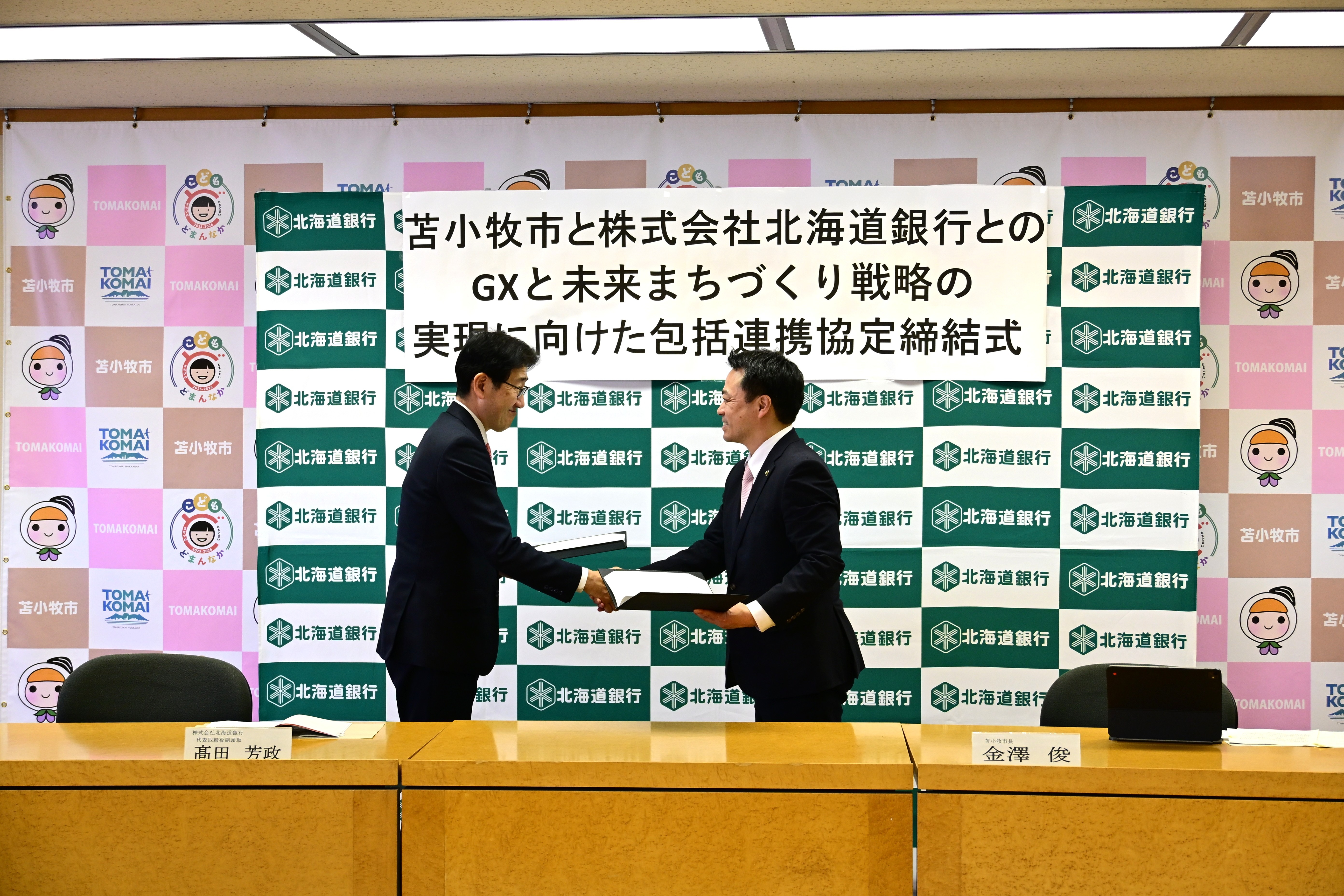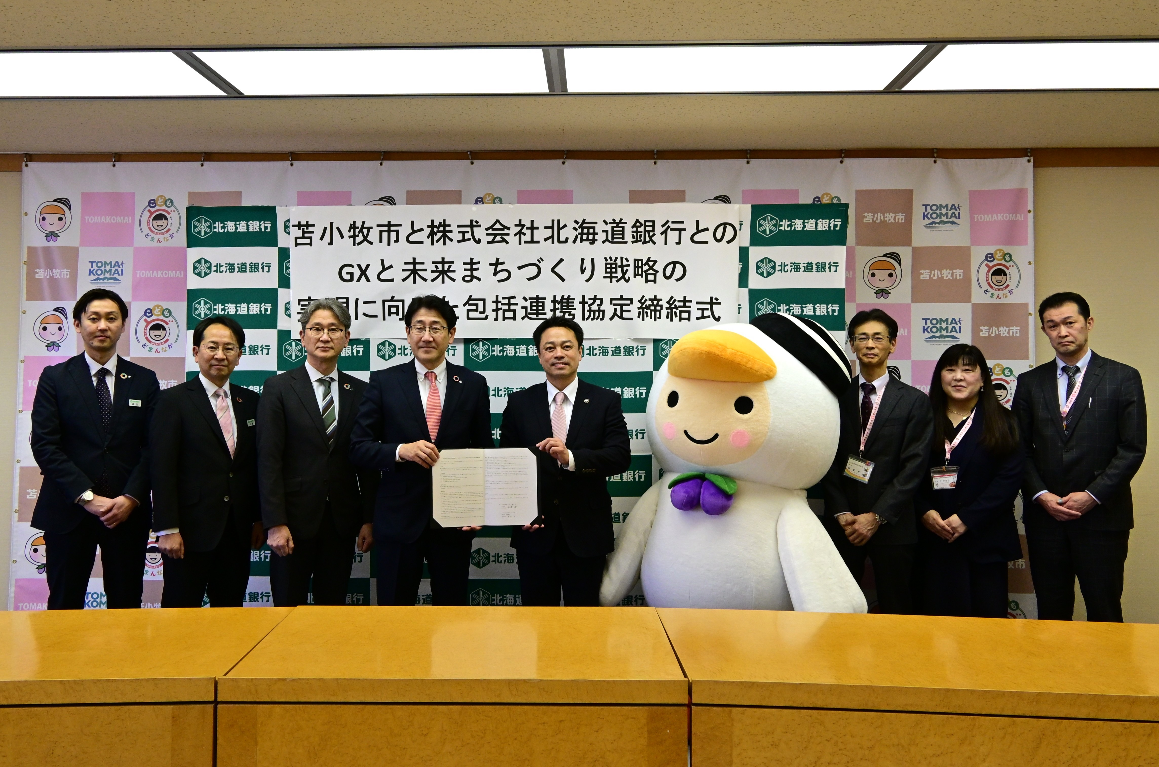 苫小牧市と株式会社北海道銀行は、令和8年3月18日付けで、双方の資源を有効に活用した協働によるまちづくりを推進し、地域活性化や市民サービスの向上に寄与することを目的として包括連携協定を締結しました。