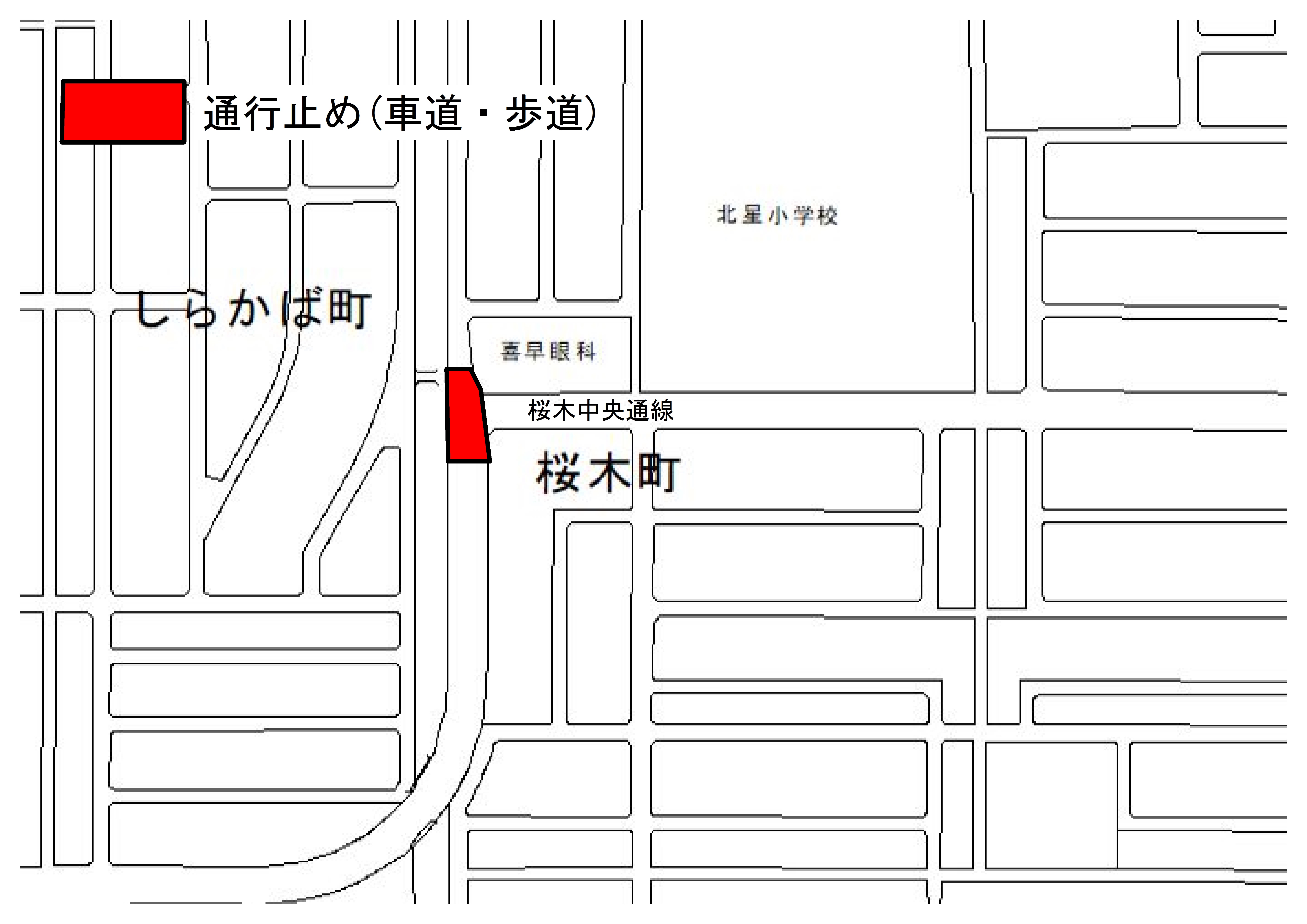 桜木中央通線(喜早眼科前交差点)の補修工事に伴い、交差点周辺車道及び歩道を夜間に限り規制いたします。利用中の皆様にはご不便をお掛けしますが、ご理解とご協力をお願いします。