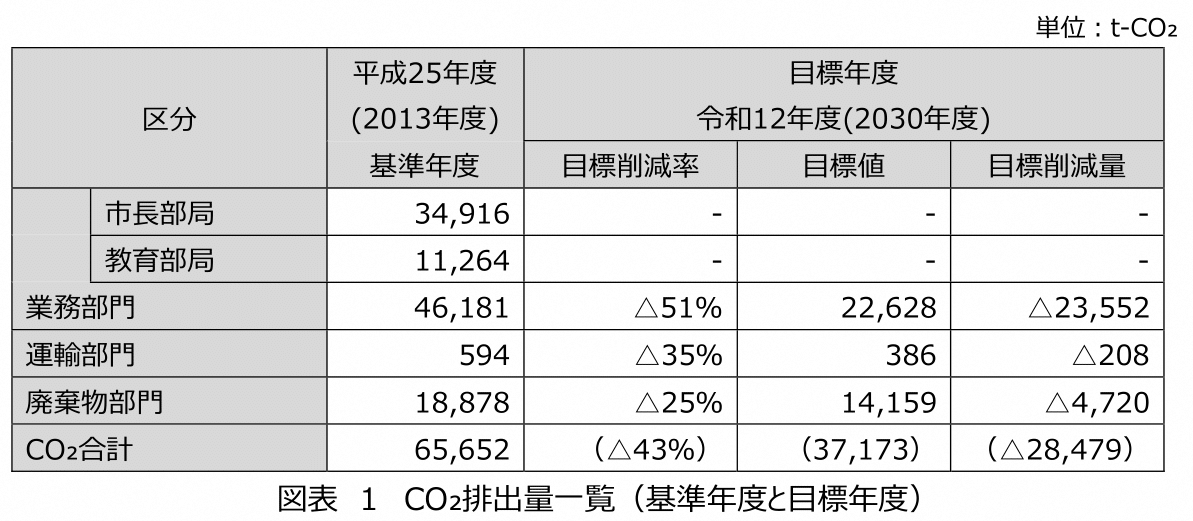 苫小牧市が行う全ての事務・事業における各部内のCO₂排出量の削減を図る