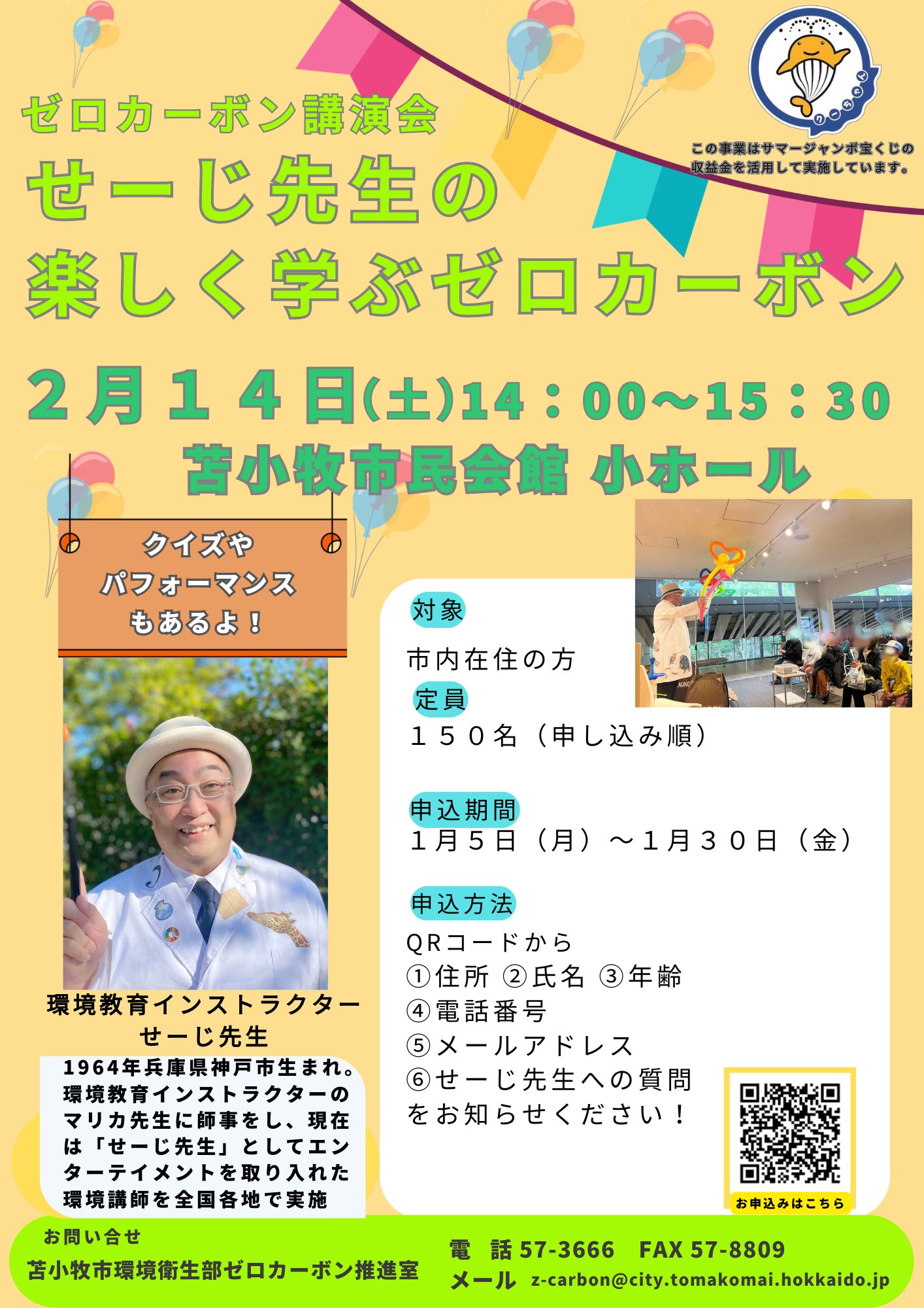 | 令和8年2月14日(土) | ゼロカーボン講演会「せーじ先生の楽しく学ぶゼロカーボン」 |