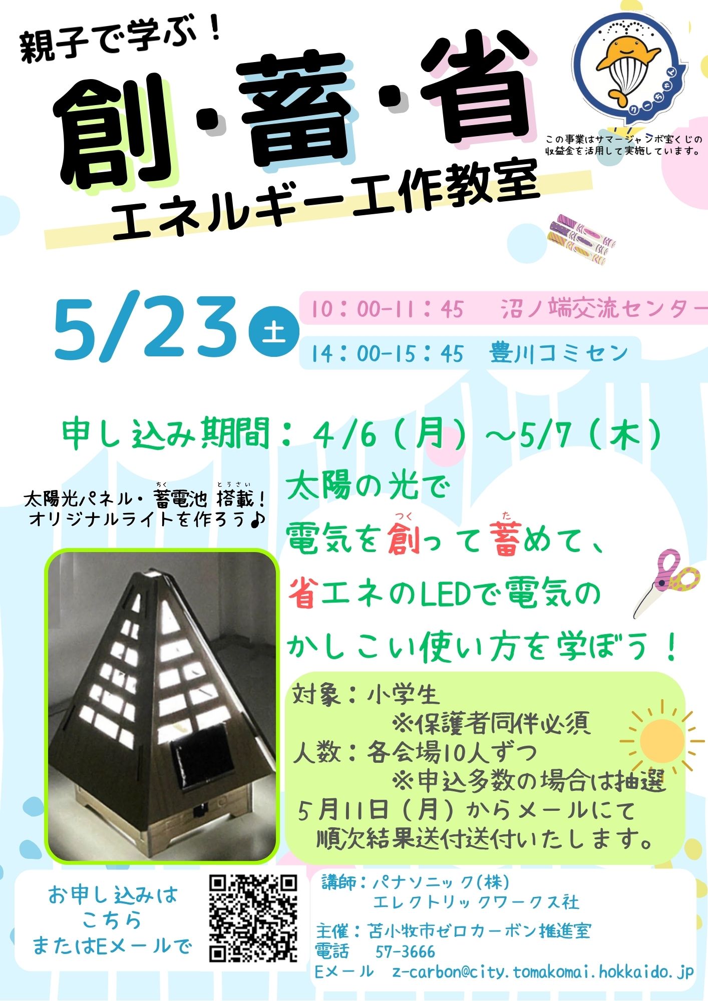 | 令和8年5月23日(土) | 親子で学ぶ!創・畜・省エネルギー工作教室 |