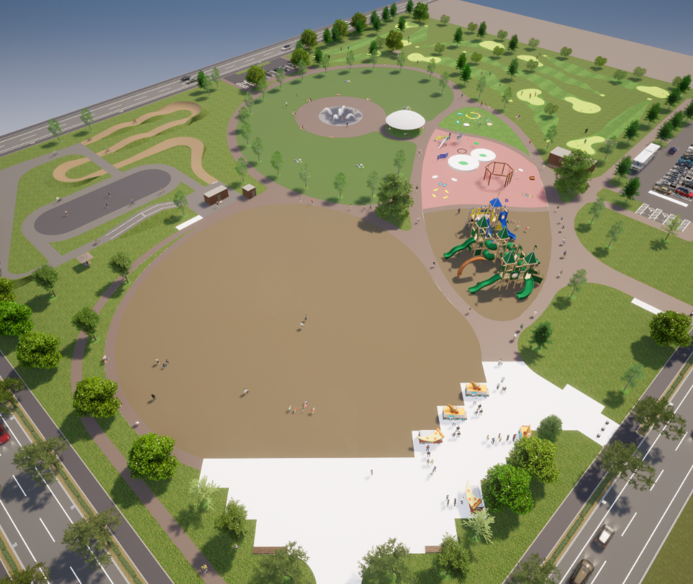 勇の原公園は「遊び・体験・憩い・交流から『次世代へつなげるみんなの公園』」を整備コンセプトとし、市内で初となる障がいのある子もない子もみんなで遊べる「インクルーシブ遊具」の整備や、自転車に乗りながら遊べるミニBMXコースの整備など、たくさんの皆様に楽しんでもらえる公園整備を目指しております。
