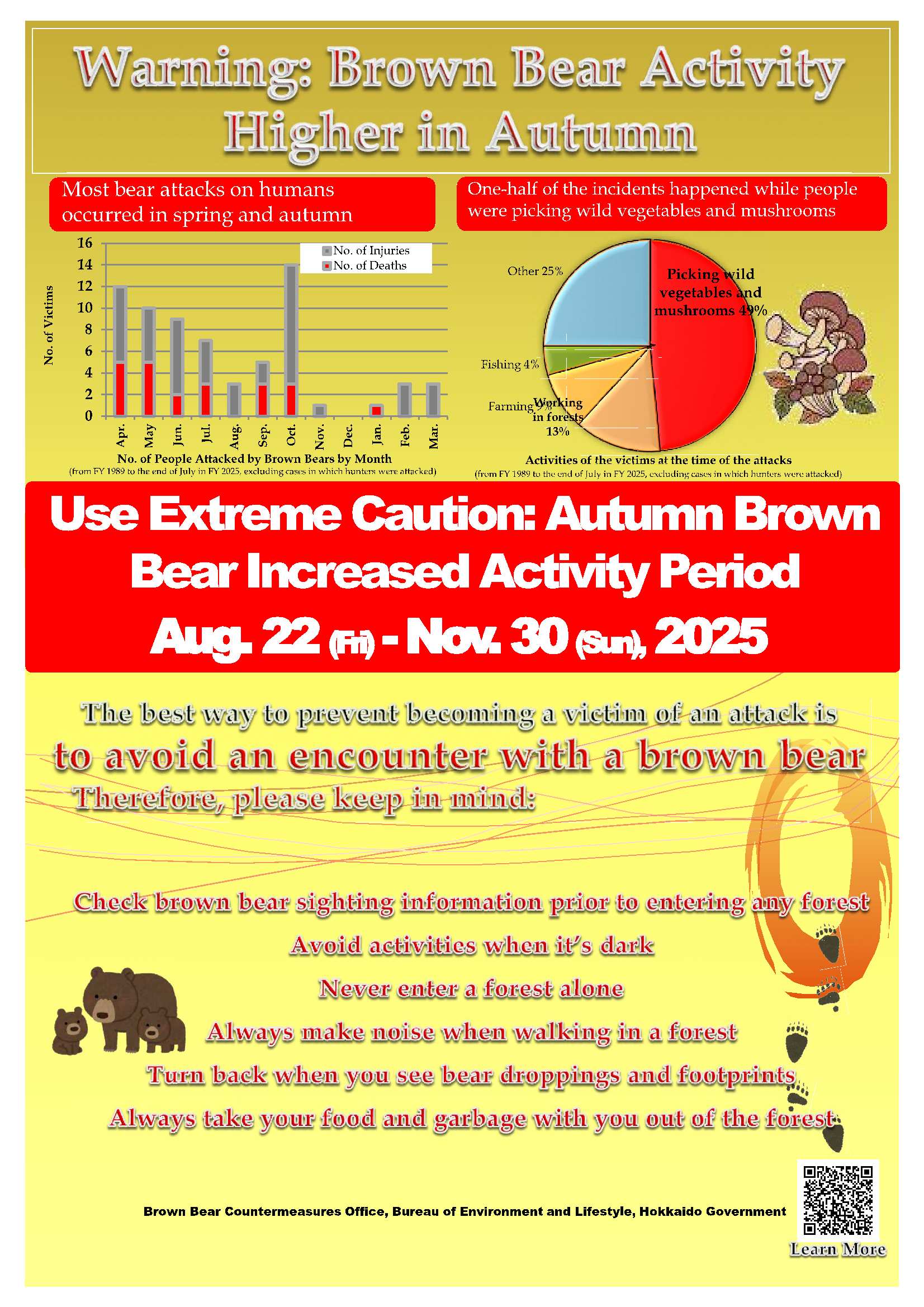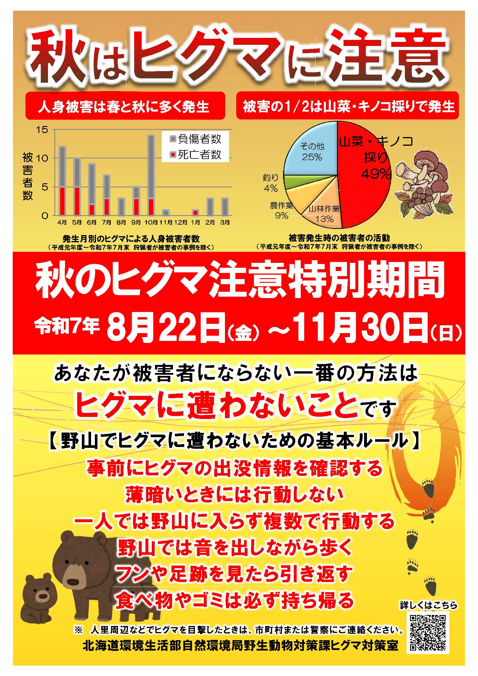 山菜採りやハイキングなどのお出かけの際は、くれぐれもヒグマにご注意ください。