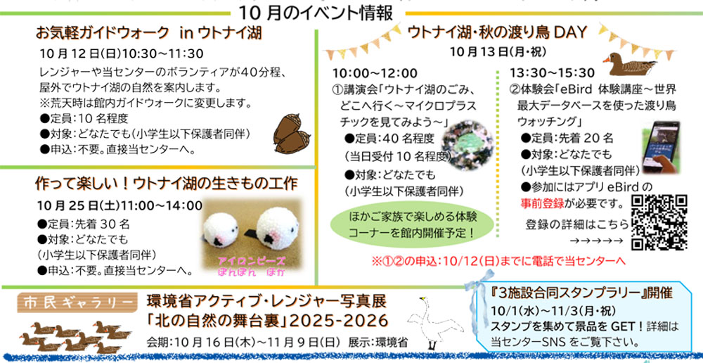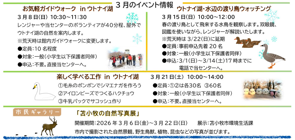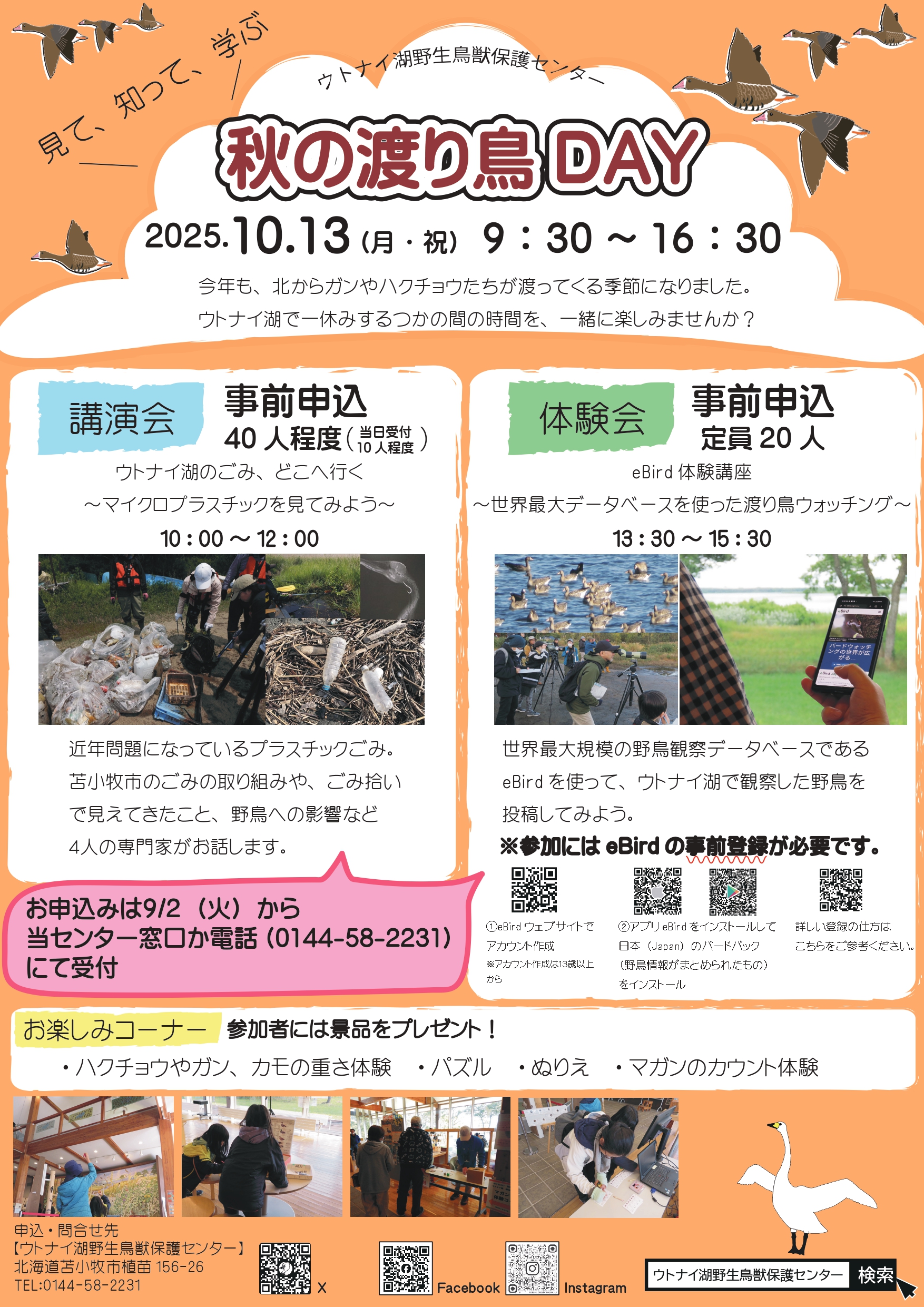 ※詳細は「ウトナイ湖野生鳥獣保護センター」TEL:0144-58-2231へお問い合わせください。